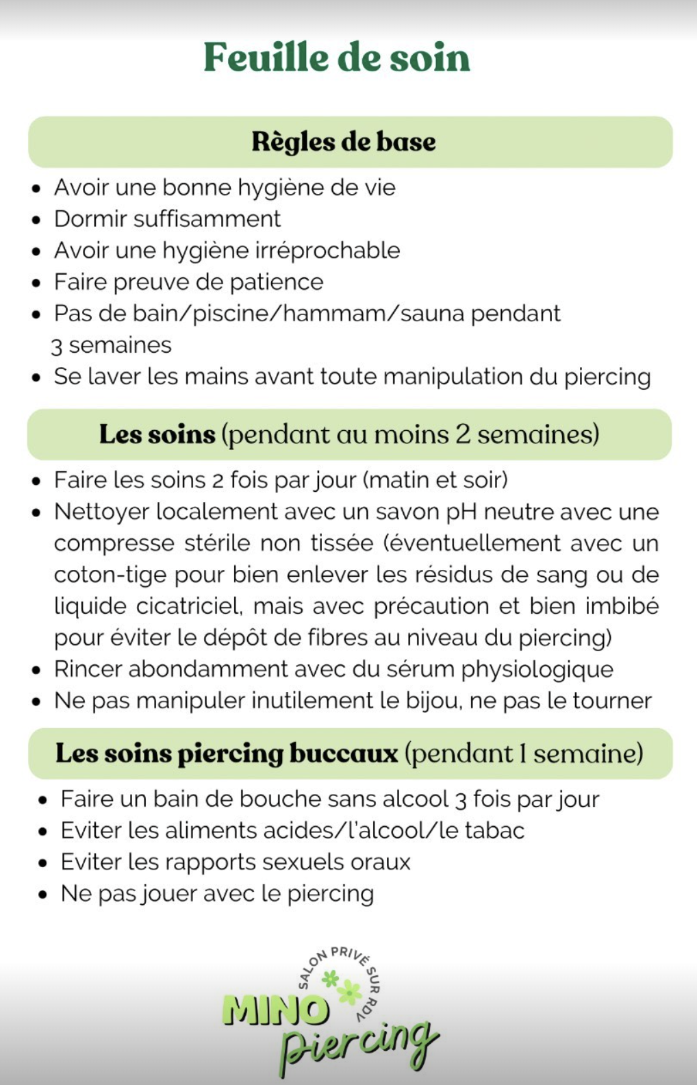 Piercing mineurs : Lobe à partir de 8 ans, Cartilage oreille à partir de 16 ans. Présence