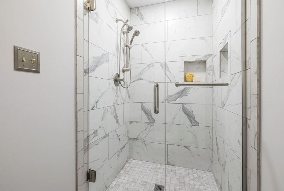 Espace douche sans meuble de salle de bain